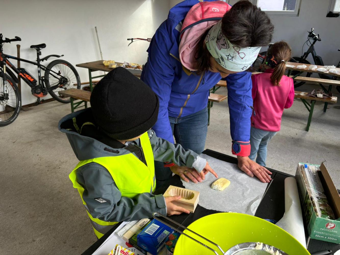Danach durften die Kinder selber mit einem Marmeladeglas und Rahm Butter schütteln.