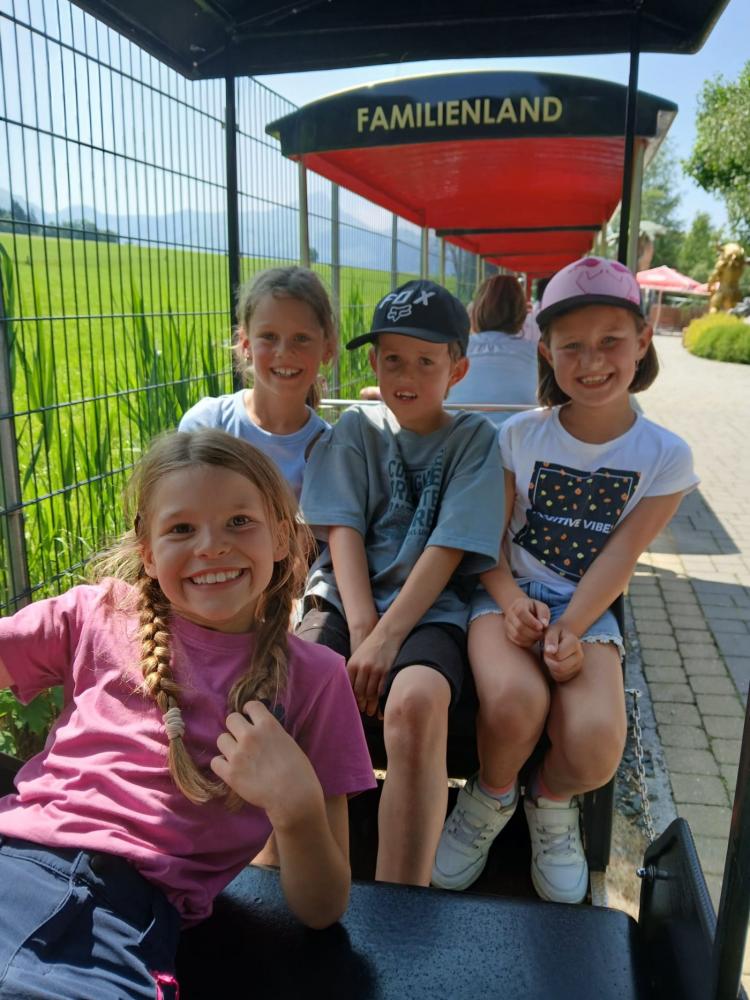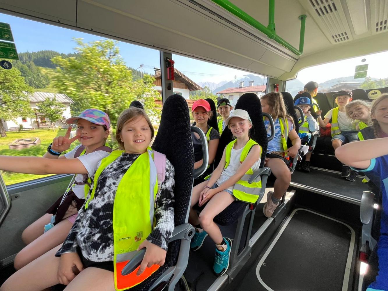 Zum Abschluss der 2. Klasse unternahm Lehrerin Katharina mit den 20 Schülerinnen und Schülern am Donnerstag, 12. Juni, eine Rundreise durch das Pillerseetal. Da in diesem Schuljahr im Sachunterricht der Schwerpunkt "Heimatkunde - die Orte im Pillerseetal“ lautete, konnten sie nun die 5 Gemeinden mit dem Regiobus er"fahr"en. Vom Gemeindeamt Hochfilzen ging es in der Früh los. In jedem Ort wurde Halt gemacht, durch den Ortskern spaziert, ein paar sehenswerte Plätze angesehen und dann ging es weiter zur nächsten Gemeinde. Die letzte Station der Rundfahrt war St. Jakob in Haus, wo die Klasse schließlich das Familienland besuchte, was allen großen Spaß machte! Vielen Dank an das Busunternehmen Dödlinger für die großartige Unterstützung!
