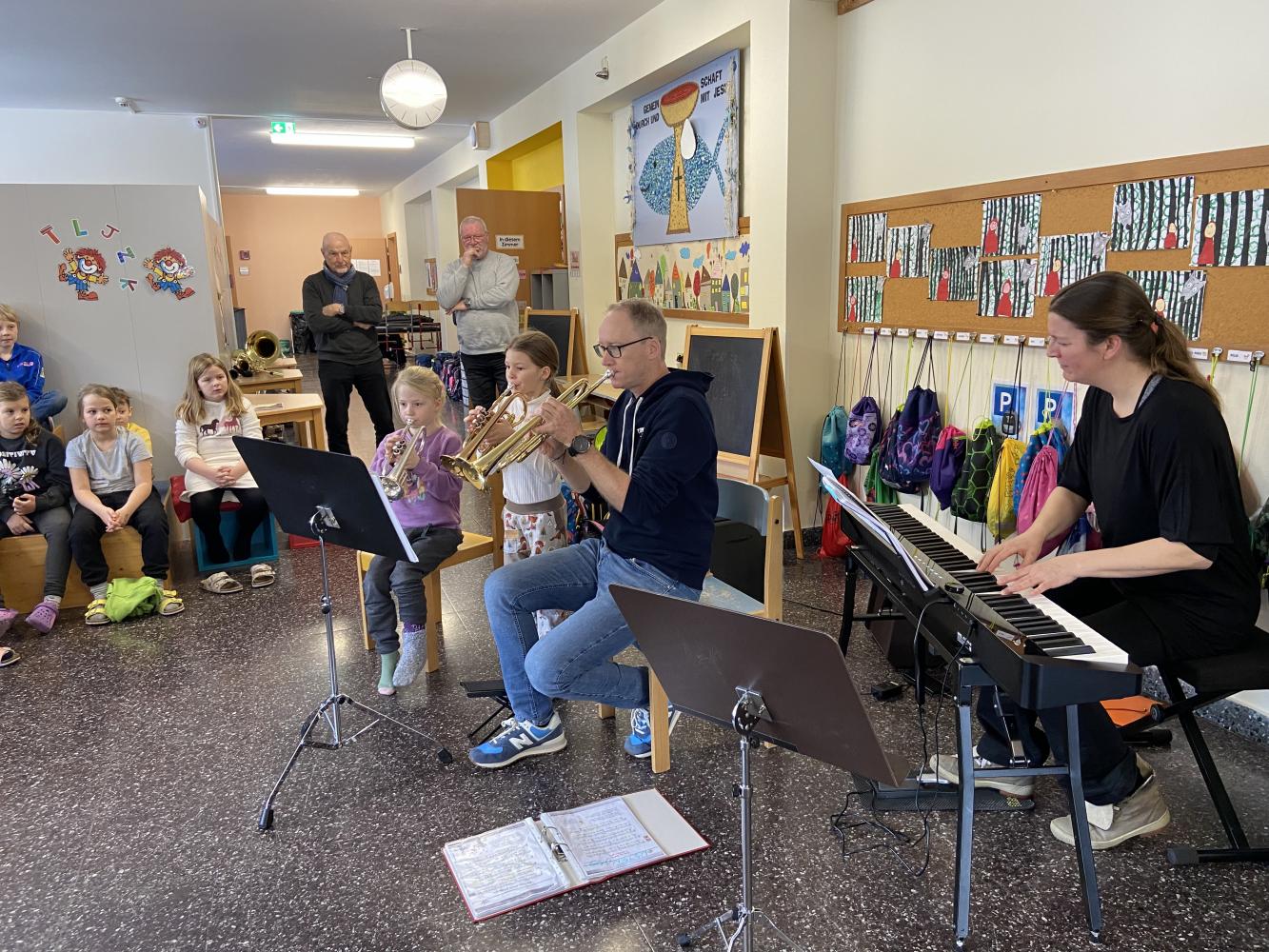 Am Freitag, 7. Februar 2025 organisierte Andrea Wieser, Expositurleiterin der Musikschule in Fieberbrunn, ein Volksschulkonzert. Alle Kinder, die ein Instrument lernen, durften vor ihren Lehrerinnen, Mitschülerinnen und Mitschülern ihr Können zeigen. Andrea begleitete einige Kinder auf dem Klavier und auch Musiklehrer Andreas Wörter war mit dabei und unterstützte seine Schülerinnen. Das Publikum war begeistert vom tollen Programm! Auch Kapellmeister Klaus Lackner und Ernst Maier von der Musikkapelle Hochfilzen waren mit dabei und stellten im Anschluss an das Konzert verschiedene Instrumente vor, die von den Kindern auch gleich ausprobiert werden durften.